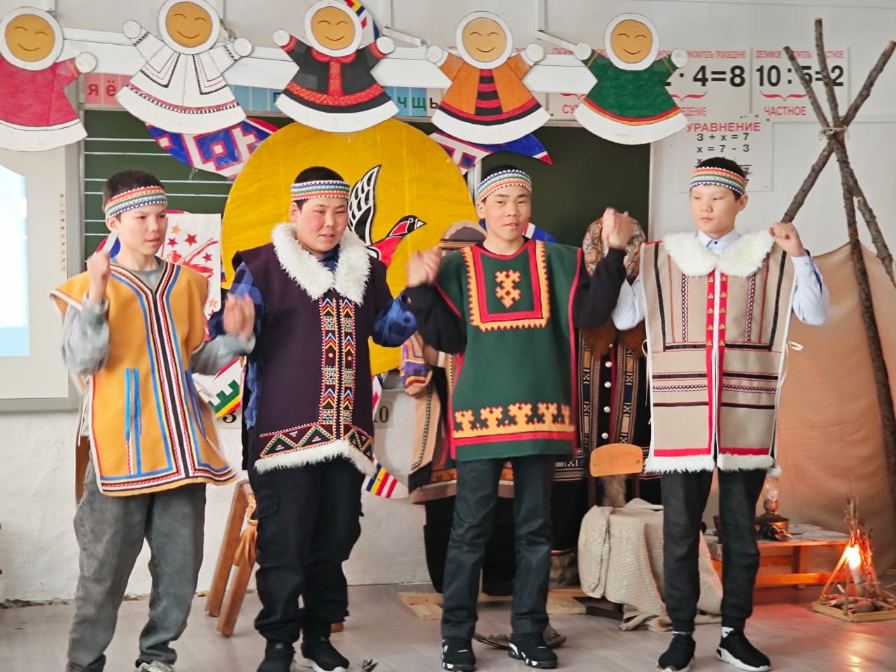 На празднике развернули тематические чумы, в которых всех желающих угощали горячим чаем и национальной кухней. Рядом с чумами была организована ярмарка, на которой педагог школы Юлия Леонидовна Ямкина и учащиеся продавали сувениры ручной работы, вырученные средства были переданы благотворительной группе «Таймыр воинам Донбасса».